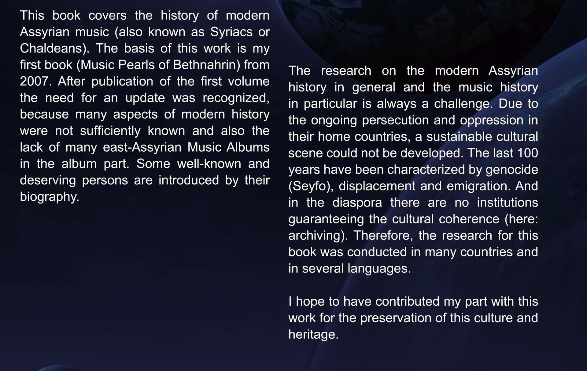 The publication of the first book (Music Pearls of Bethnahrin) in 2007 was a first attempt to